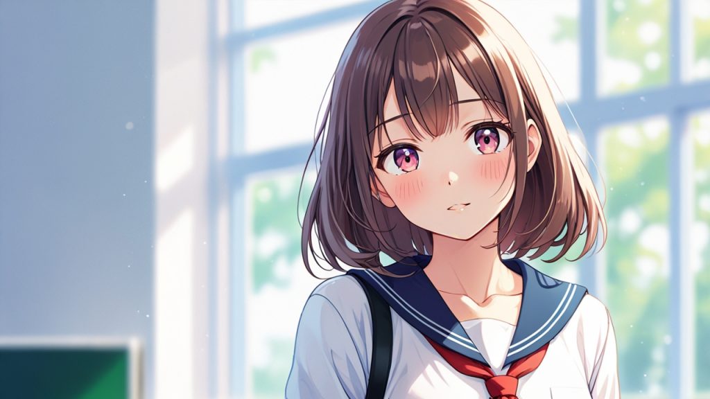 柔らかな光と学園風の衣装をテーマに制作したサンプルイラスト作品です。表情や雰囲気を細かく調整し、キャラクター性を感じられる内容となっています。